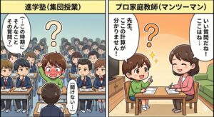 - 完全受け身の「お客様」状態: 授業中、ただ座って話を聞いているだけ。先生が解説してくれるのを待っている。